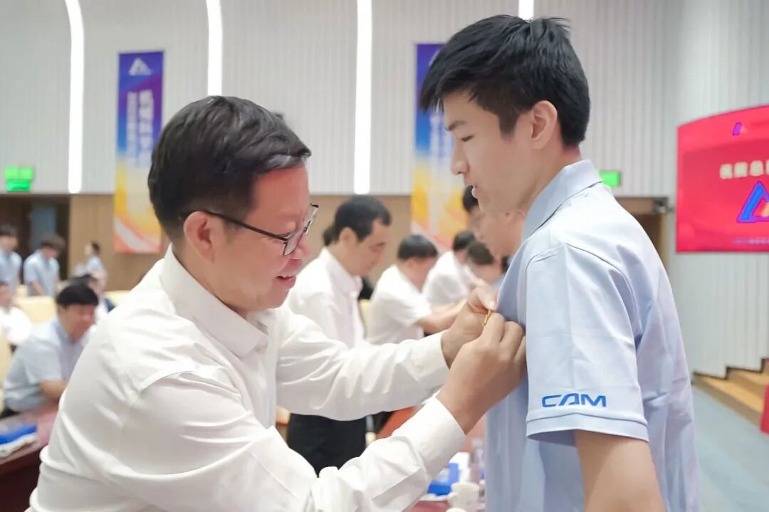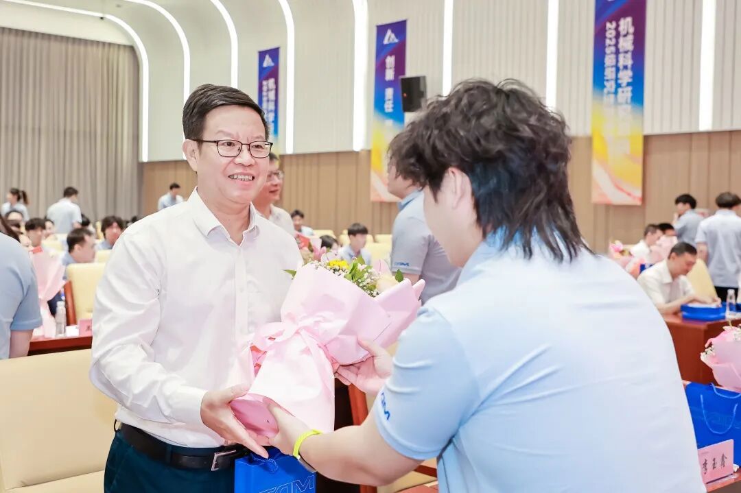 典礼上,王德成、李玉鑫及导师代表共同为新生佩戴总院徽章。这枚徽章不仅象征着中国华体官方网页版_华体(中国)官网总院人的身份,更承载着“以提升中国装备制造水平为己任”的使命与荣光。优秀导师奖、最受欢迎教师奖、新生入学奖学金和优秀课程奖获奖代表上台领奖。新生代表手捧鲜花向导师们献上诚挚敬意与节日祝福,表达莘莘学子的感激之情。